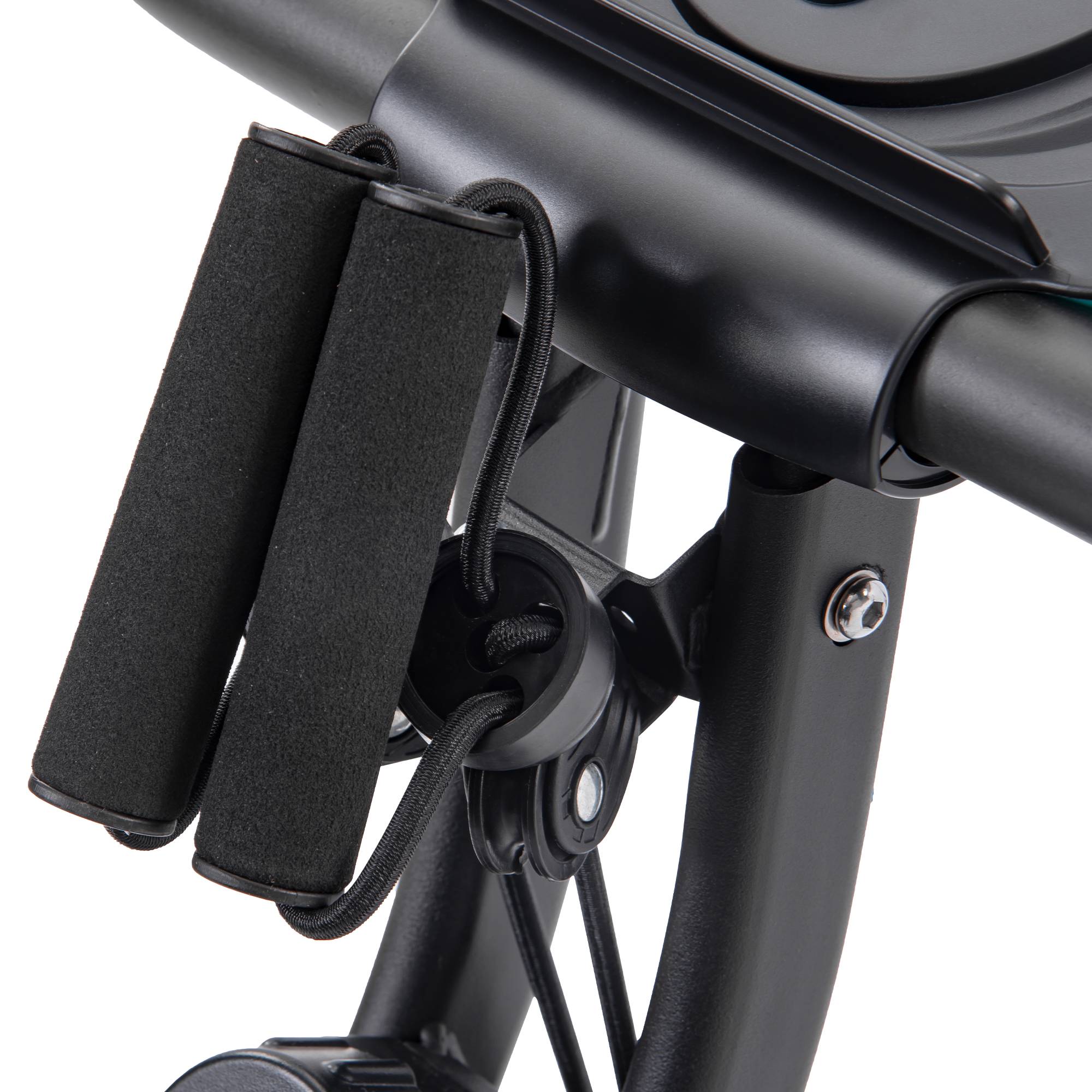 Other Features - Innovative arms bands for upper body strength training. Pedals with straps to keep your feet in place to increase stability. Transport wheels help you move the bike out of the way fast and easy.